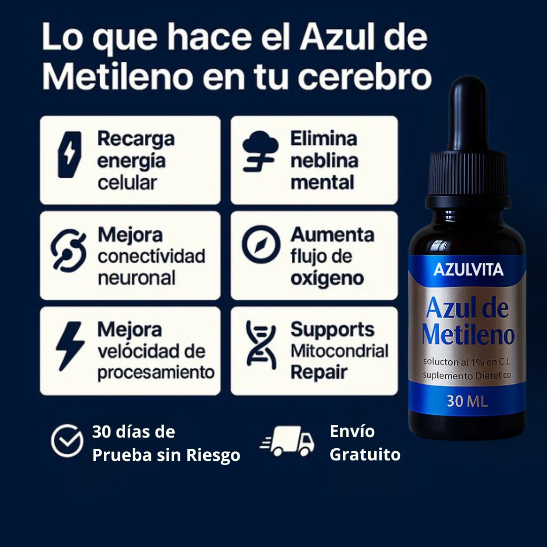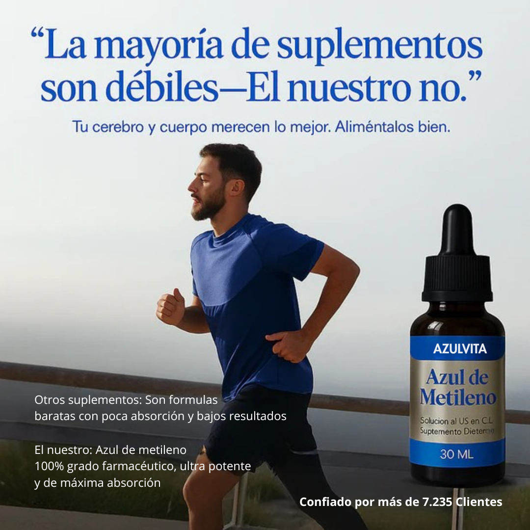 La mayoría de los suplementos solo enmascaran los síntomas. El azul de metileno va más allá, abordando la raíz del agotamiento mental y físico.