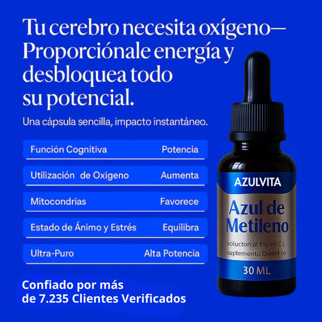 Con una formulación de grado farmacéutico y probado en 3 laboratorios, el azul de metileno es una solución segura y efectiva para mejorar la salud mental y física. Respaldado por expertos, ayuda a tu cerebro a funcionar con mayor claridad y energía, sin comprometer tu bienestar.
